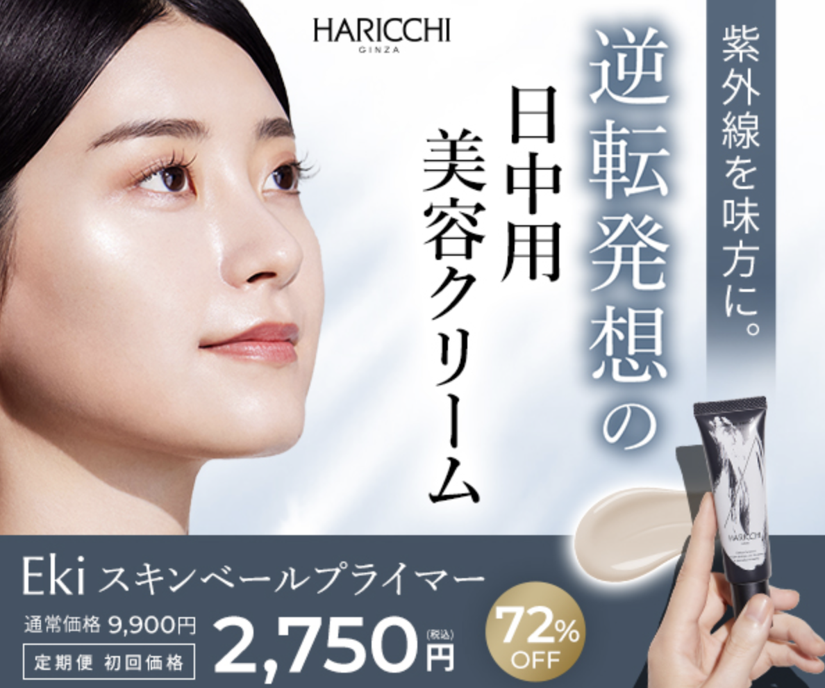 Eki スキンベールプライマーは、美容鍼灸院「銀座ハリッチ」から誕生した日中用美容クリーム型の化粧下地です。